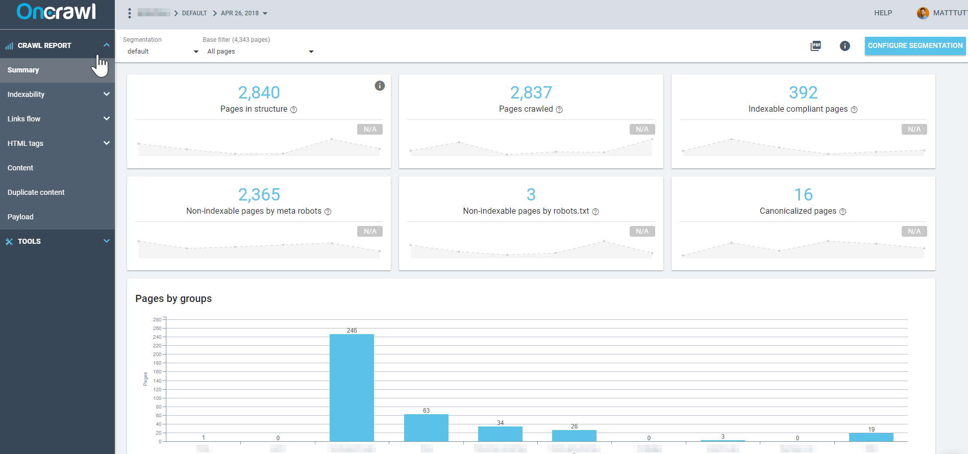 Pour tous ceux qui sont familiers avec les budgets de crawl, vous saurez que cela cause de gros problèmes SEO. Vous pouvez contrôler le Googlebot en n’indexant pas les pages des résultats de recherche pour les empêcher de gâcher leurs crawls et de passer à côté des ressources les plus utiles de votre site. Utiliser un outil comme OnCrawl permet de trouver et de diagnostiquer ces problèmes de crawl en lançant simplement un crawl complet de ces zones de votre site.